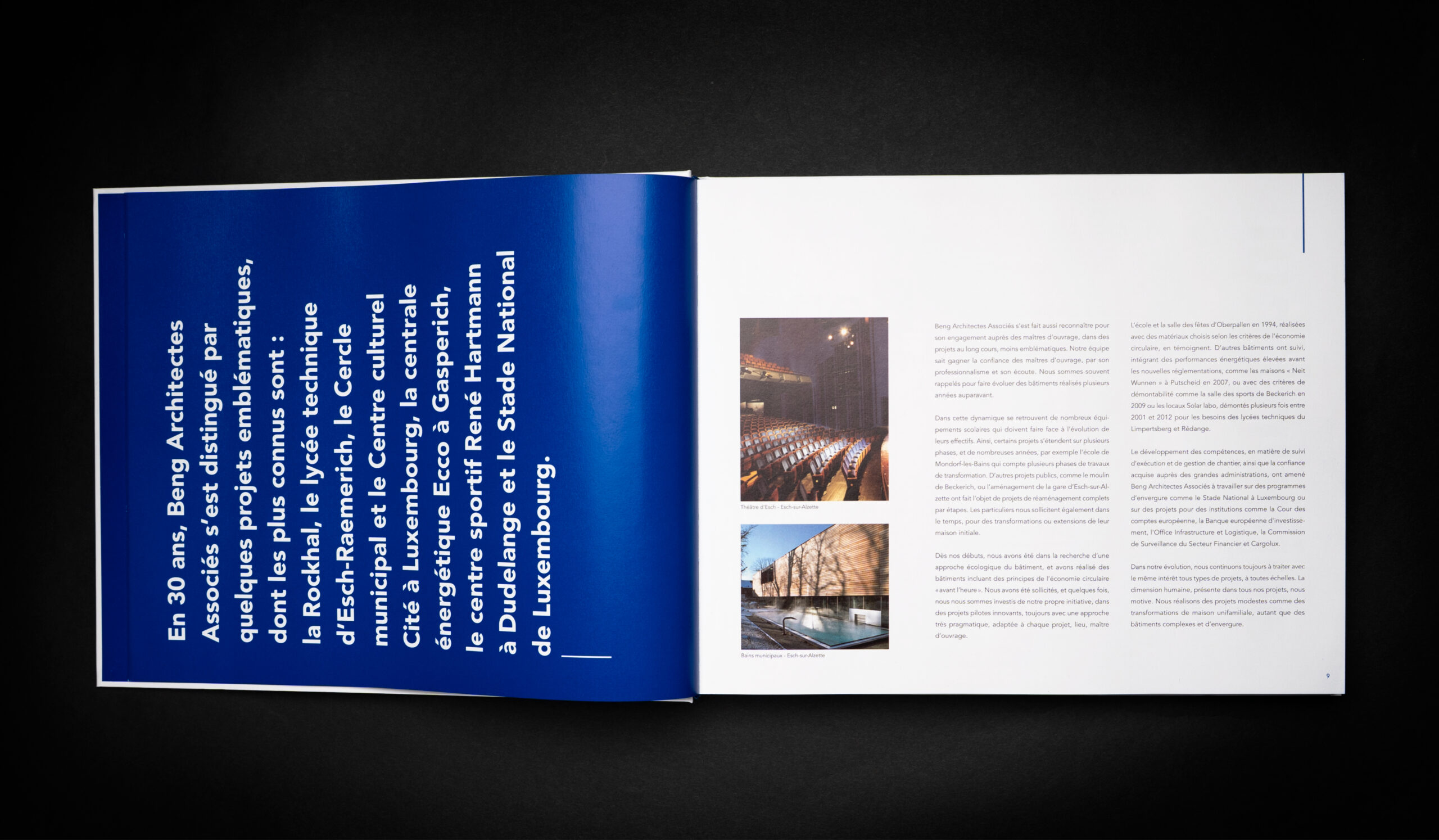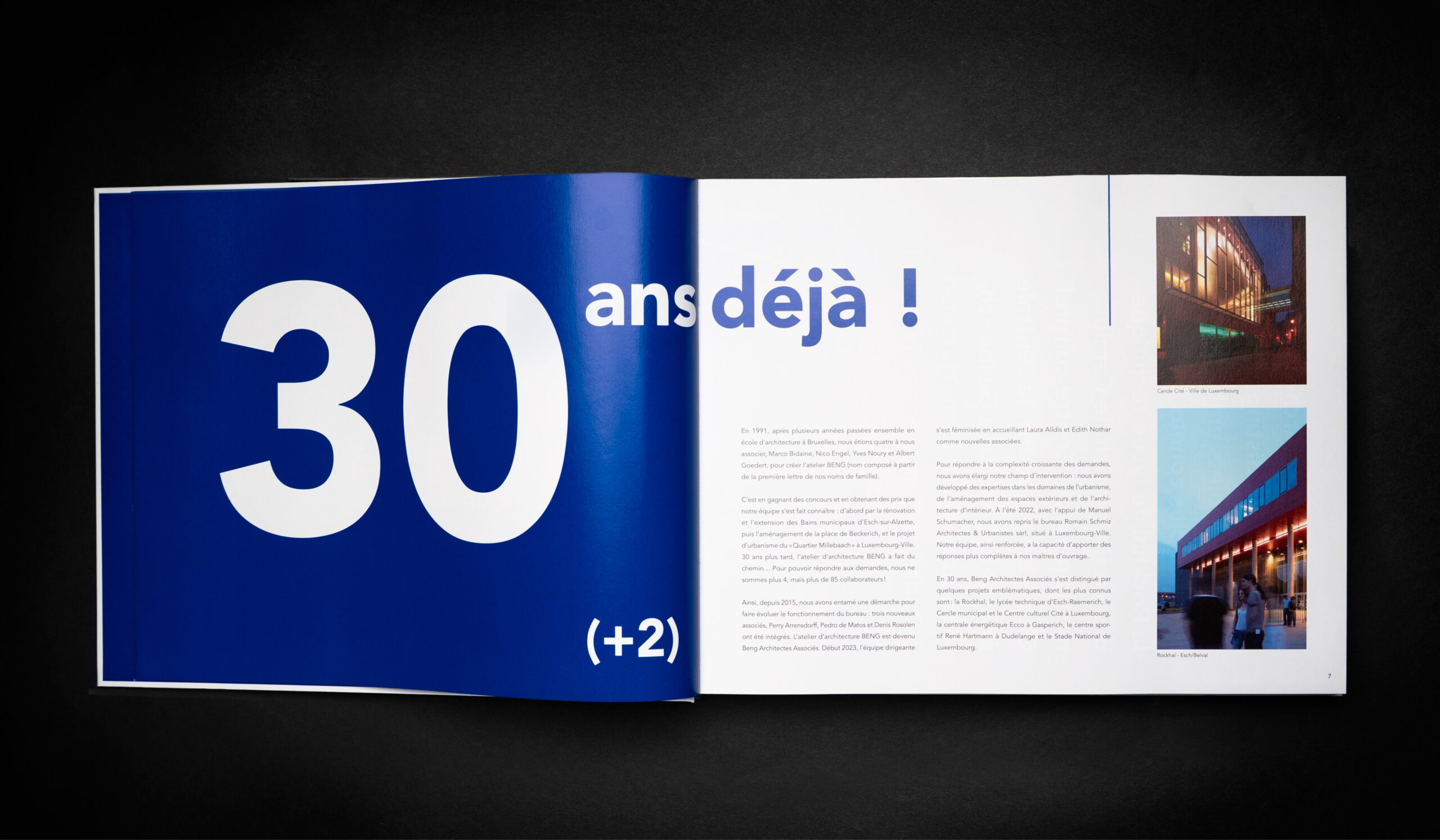 The client distributed the book during their anniversary celebration at the privatized Rockhal venue. The beautifully designed brochure not only commemorates three decades of architectural excellence but also serves as a lasting testament to the firm’s iconic projects.