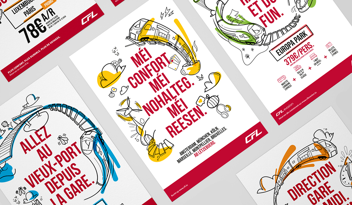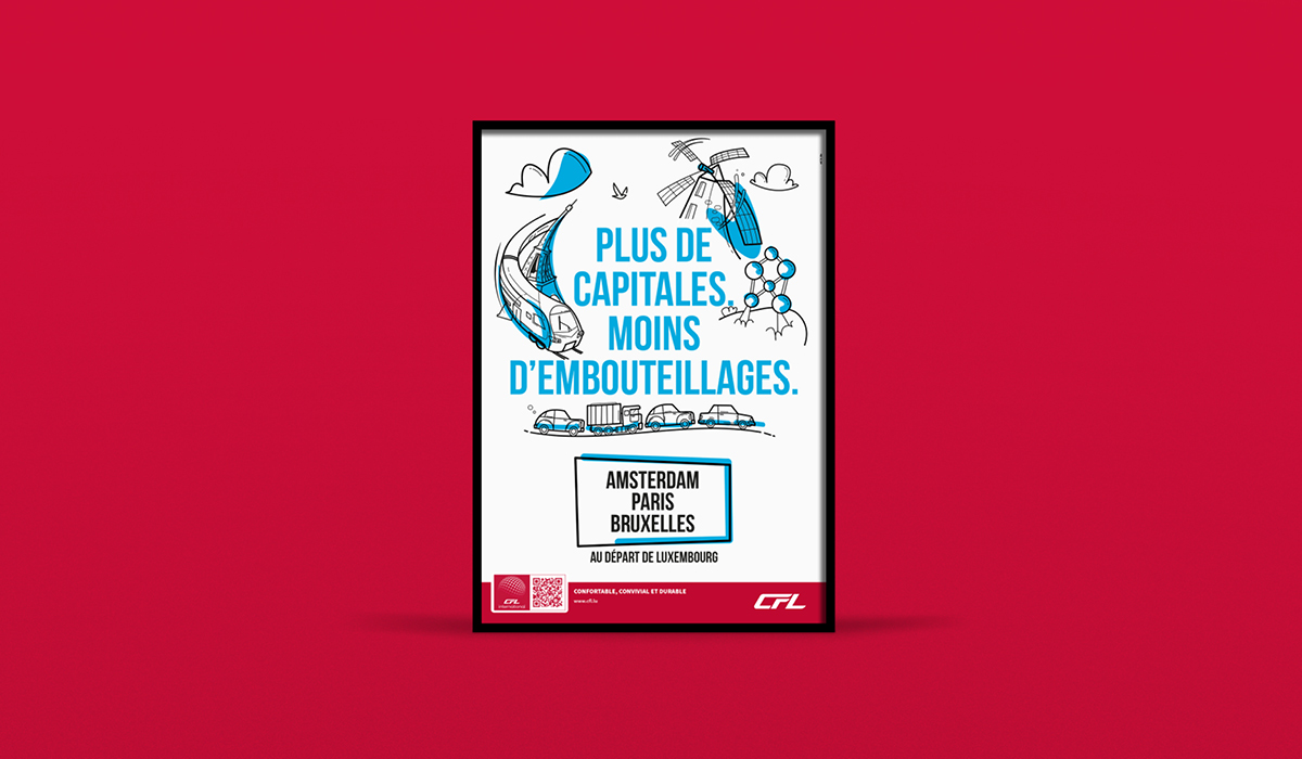CFL – Chemins de Fer Luxembourgeois – wanted to encourage travelers to choose the train as a more convivial, comfortable, and sustainable way to explore Europe. The campaign’s ambition was to inspire people to see rail travel not just as a means of transport, but as the beginning of the journey itself.